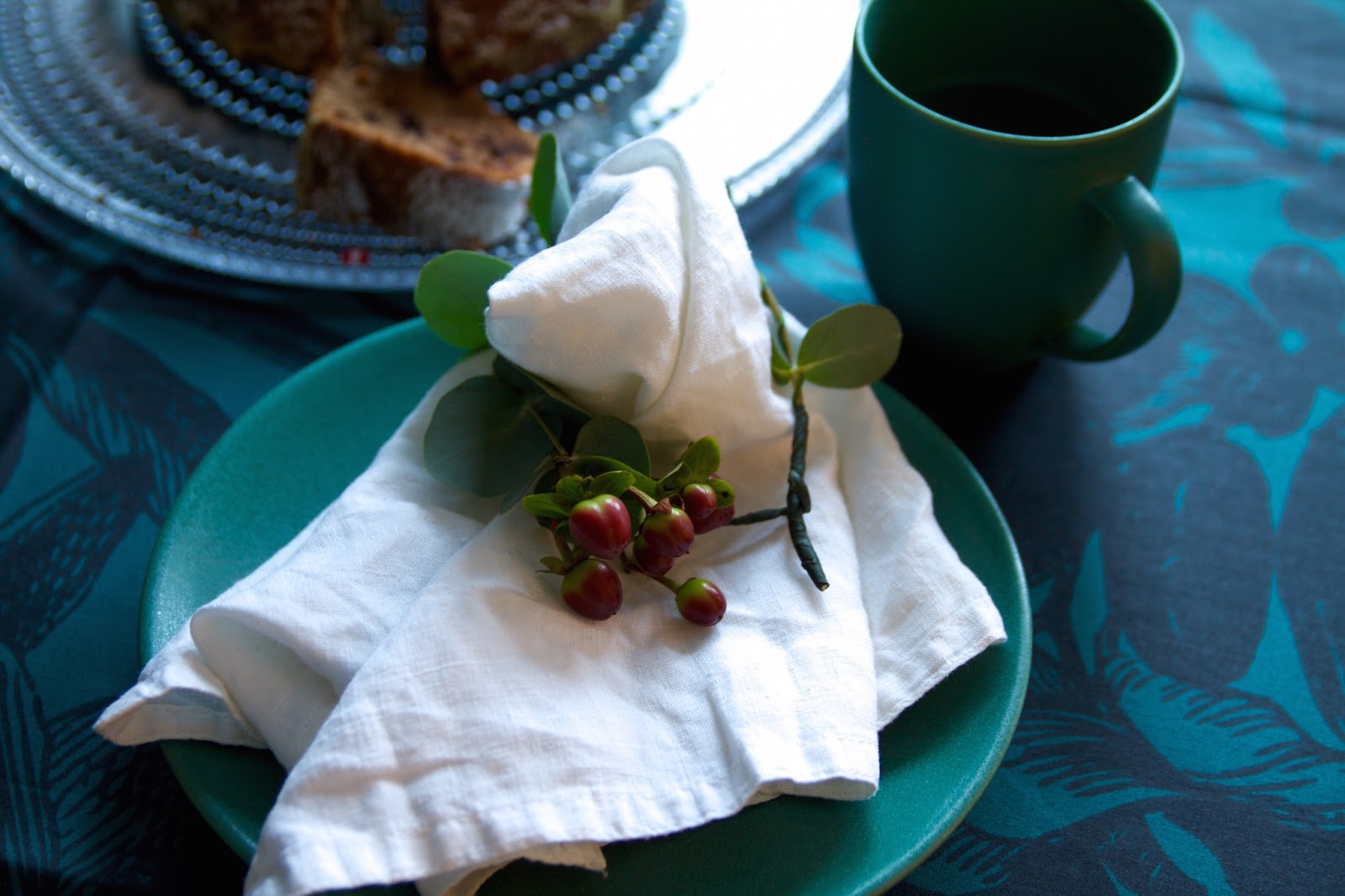Meillä kattaus syntyy arkeen ja juhlaan samoilla astioilla. Kaapeista ei löydy erillistä juhla-astiastoa tai pöytähopeita juhlatunnelmaa tuomaan. Ajatus näistä on kaunis, mutta vähän tilaavievä ja jotenkin tarpeeton. Miksi pitäisi säästellä toisia astioita vain erityistä hetkeä varten? Kuitenkin vuoden aikana on päiviä, kun tekee mieli kattaa pöytä erityisen koreasti. Joulun pyhät ovat varmasti yksi näistä ajankohdista. Jos astiat eivät vaihdu, juhlavuus on luotava muilla keinoin. En keksi helpompaa ja näyttävämpää tapaa tähän kuin kukat. On maljakossa sitten yksi kukka tai näyttävä kimppu, tunnelma kattauksessa muuttuu heti.